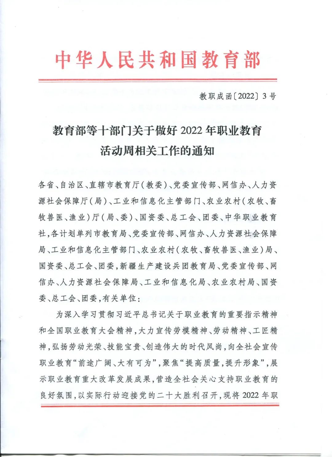 教育部等十部门关于做好2022年职业教育活动周相关工作的通知