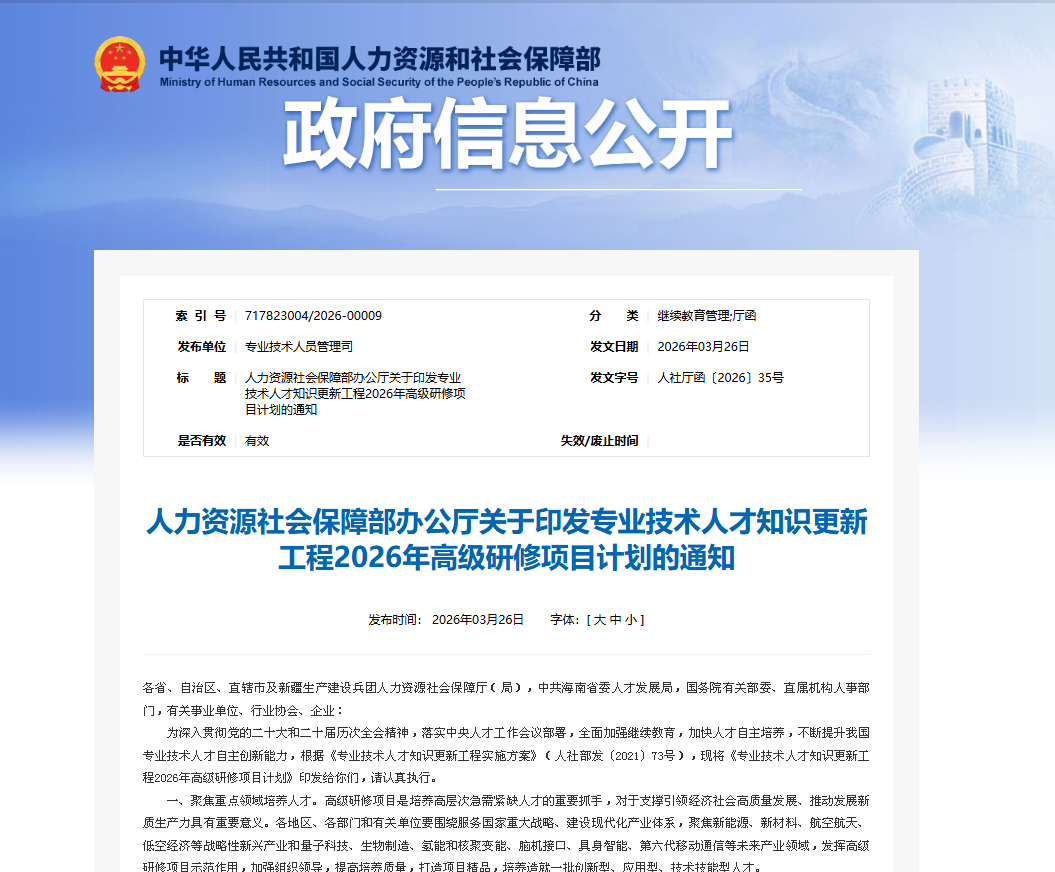 据悉,国家级高级研修项目是人社部组织实施的“专业技术人才知识更新工程”核心重点项目,紧密围绕创新驱动发展、制造强国、网络强国、数字中国等国家重大战略,聚焦前沿技术与关键核心技术攻坚,是培养高层次急需紧缺人才、加快发展新质生产力的关键抓手。