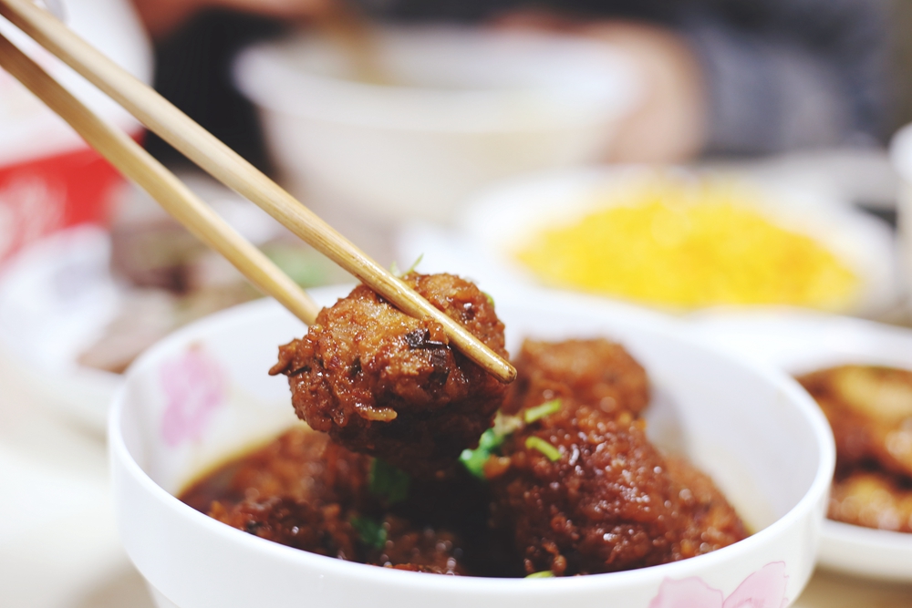 盐城当地有一道名为“红烧錾肉”的菜品,所谓的“錾肉”类似于我们经常吃的肉圆,一般的肉圆都是纯肉制作,但是錾肉的做法是在肉圆中加入糯米,米中的淀粉会在油温的高温中形成化学上的“美拉德反应”,使肉圆的香味更加诱人。